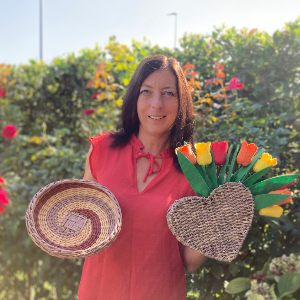 Una delle mie passioni più grandi è l’intreccio con le cannucce di carta di giornale, intreccio quotidiano. Questa tecnica nasce dall’incontro tra l’antica arte dell’intreccio e riciclo creativo e permette di esprimere al meglio la mia filosofia: riciclare e creare qualcosa di utile. Dopo anni di esperienza ho perfezionato questa tecnica in modo da poter avvicinare tutte le persone donne, uomini, bambine e bambini ad un’arte antichissima come quella dell’intreccio e nello stesso tempo sensibilizzarli all’importanza del riciclo.