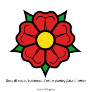 La guerra delle due rose fu una sanguinosa lotta dinastica combattuta in Inghilterra tra il 1455 e il 1485 tra due diversi rami della casa regnante dei Plantageneti: i Lancaster e gli York. La guerra provocò l’estinzione delle linee maschili di entrambi i casati e si concluse con l’affermazione di una nuova dinastia, i Tudor, di ascendenza lancasteriana, ma in cui confluivano anche gli York tramite il matrimonio della loro ultima rappresentante, la principessa Elisabetta, con il nuovo Re Enrico VII Tudor. Il riferimento alle due rose nella denominazione della guerra risale al XIX secolo, dopo che Walter Scott, nel 1829, pubblicò il romanzo Anna di Geierstein, facendo riferimento agli stemmi dei due casati che avrebbero recato rispettivamente una rosa di colore rosso e una bianca. Tuttavia, l’unico simbolo coevo di cui si ha notizia, è la rosa bianca degli York. La prima attestazione della rosa rossa è invece nello stemma dei Tudor (la rosa Tudor), che contiene le due rose sovrapposte. Ancora oggi, la rosa rossa è il simbolo dell’Inghilterra e della Federazione inglese di rugby.