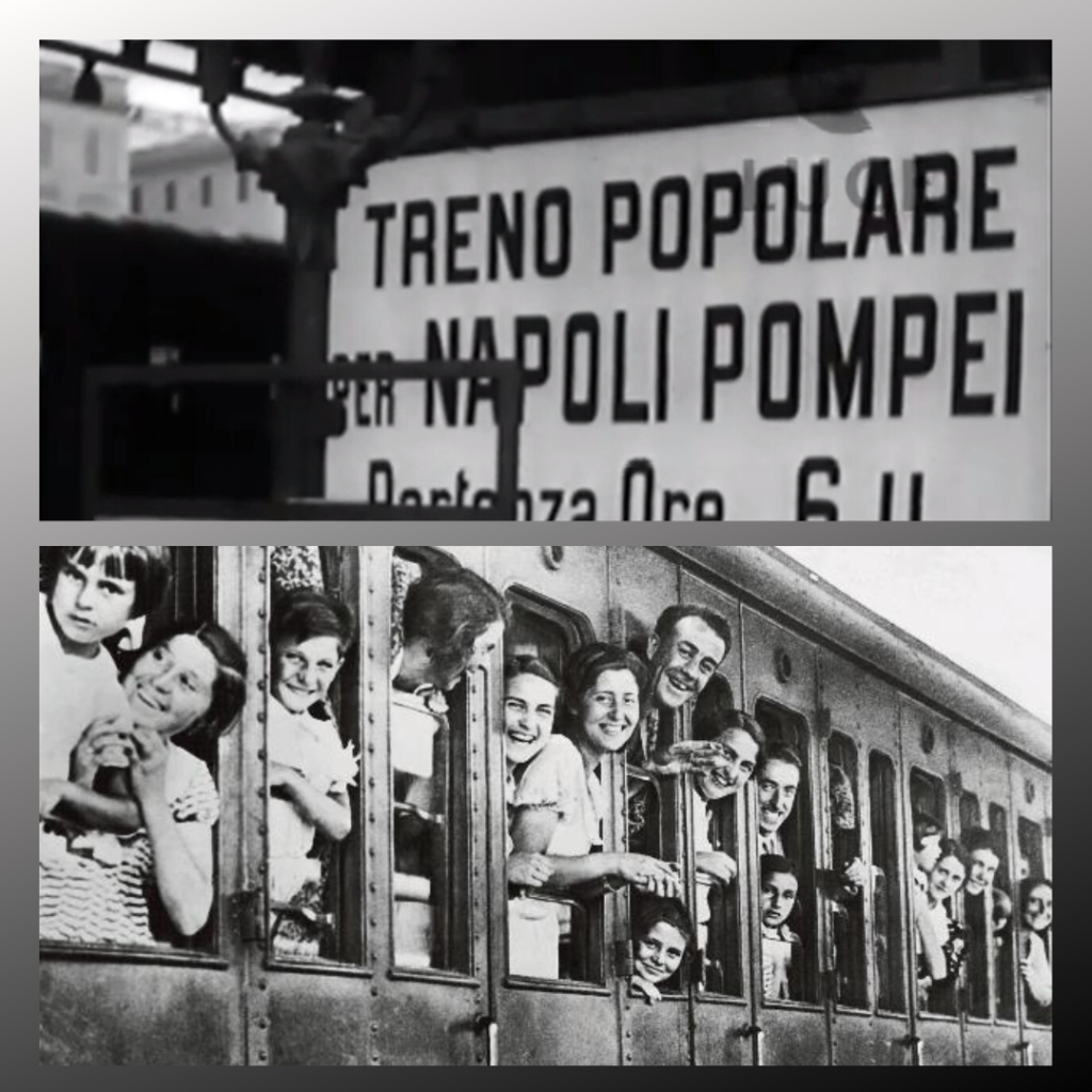 La tradizione della gita turistica di Ferragosto nacque durante il ventennio fascista. Dalla seconda metà degli anni venti, tramite le associazioni dopolavoristiche, il regime organizzava centinaia di gite popolari, in particolare negli anni Trenta ciò fu favorito dall’istituzione dei Treni popolari speciali solo di 3ª classe, popolarmente chiamati “treni di Ferragosto”.