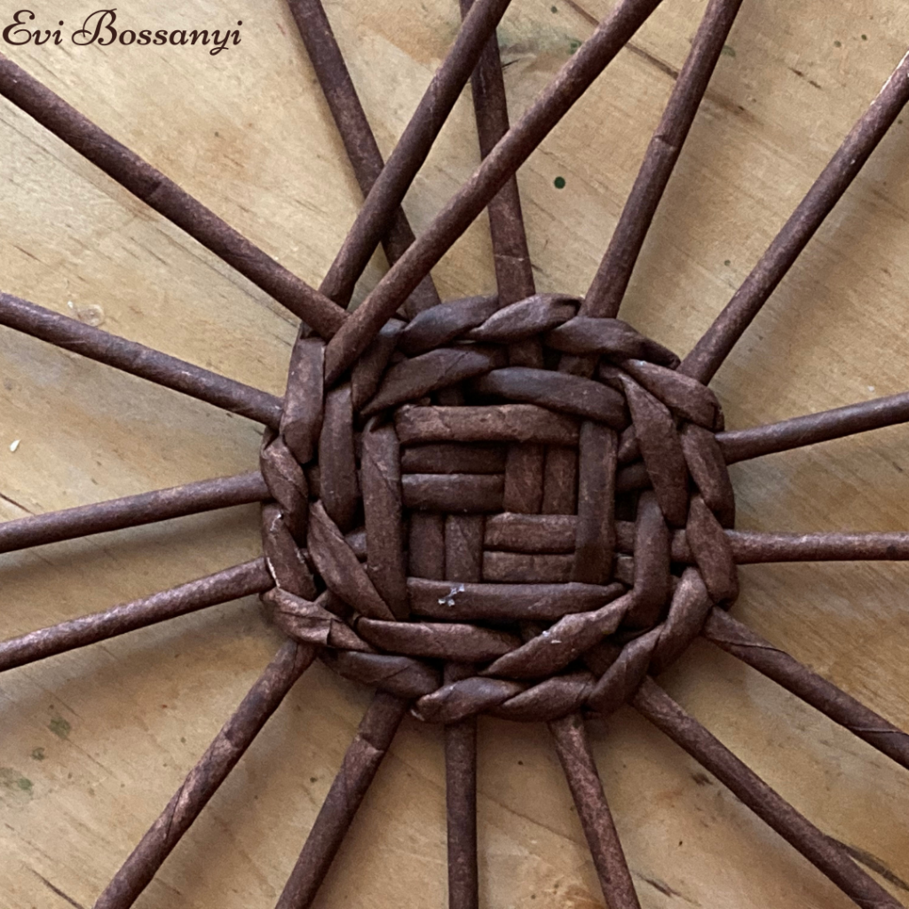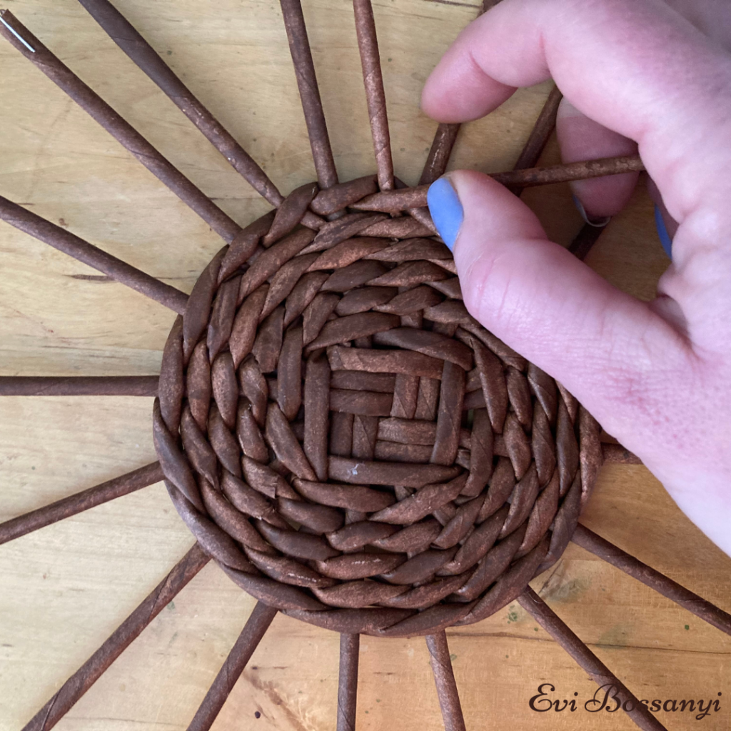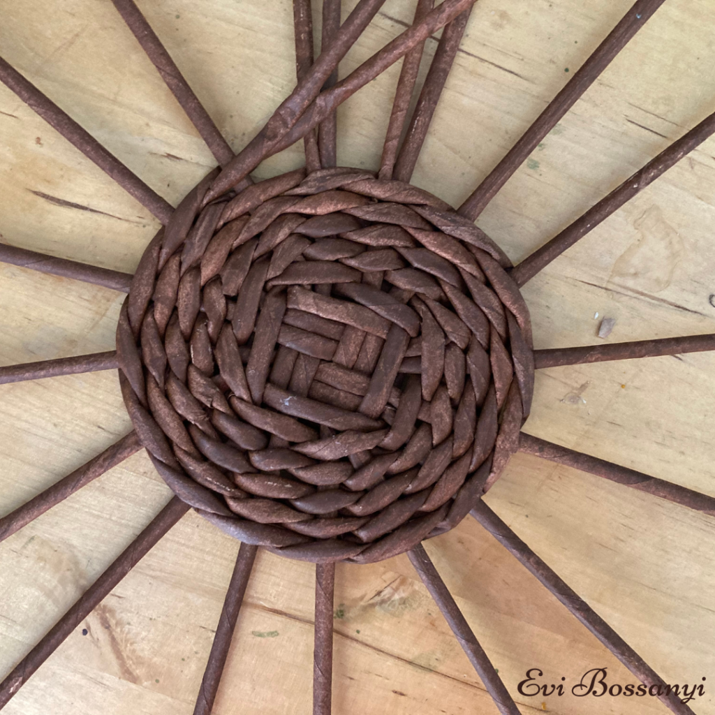 Amikor „elfogy” egyik vagy a màsik fonòszàlad illessz hozzà egy ùj papìrvesszőt ès fonj tovàbb.