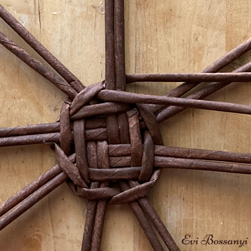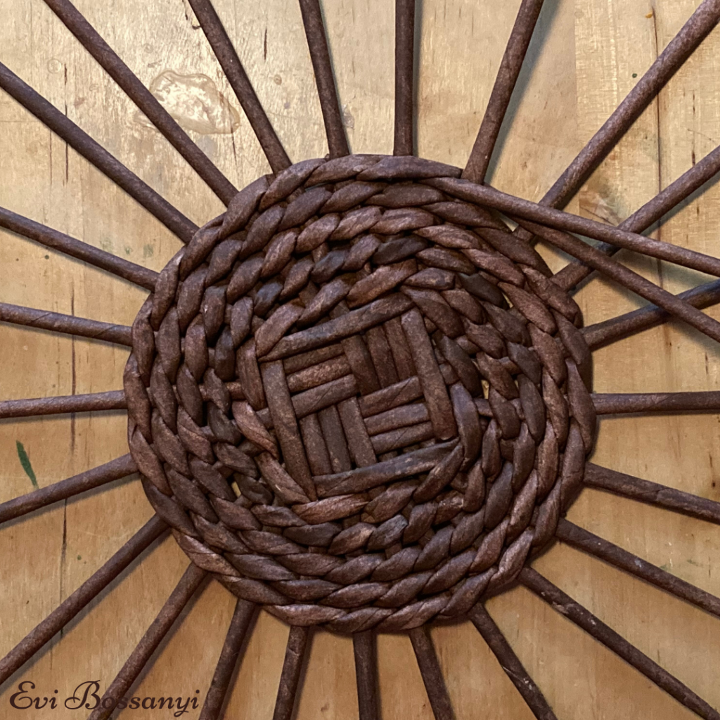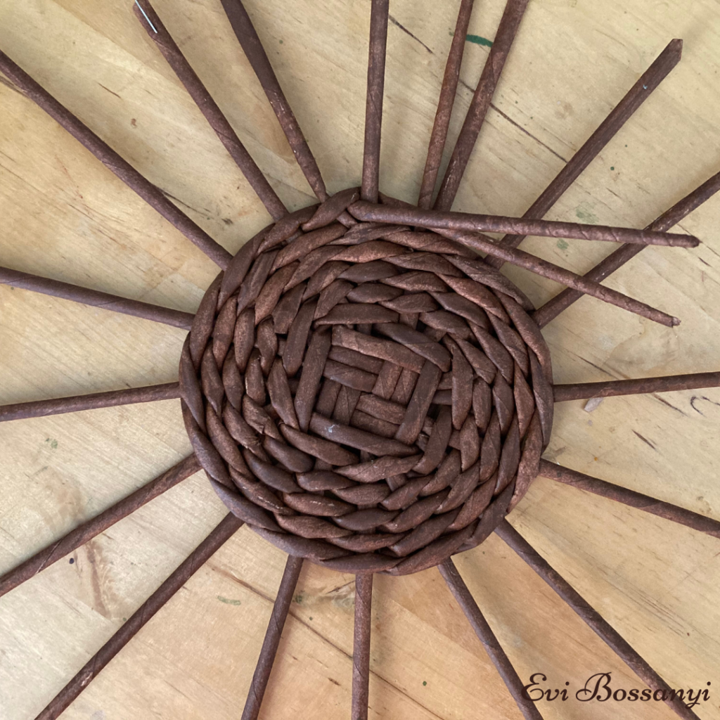 Amikor „elfogy” egyik vagy a màsik fonòszàlad illessz hozzà egy ùj papìrvesszőt ès fonj tovàbb.
