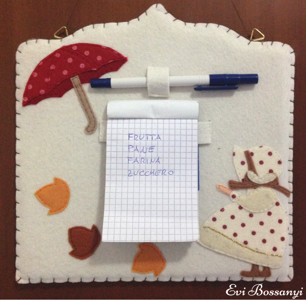 Quante volte vi capita di non trovare più la lista della spesa, un fogliettino di carta con degli appunti importanti, un numero di telefono segnato al volo? Realizzando questo utilissimo pannello da appendere avrete sempre a portata di mano i vostri appunti e non perderete più di vista le cose da ricordare.