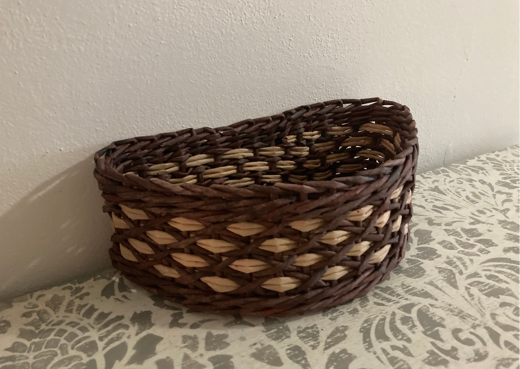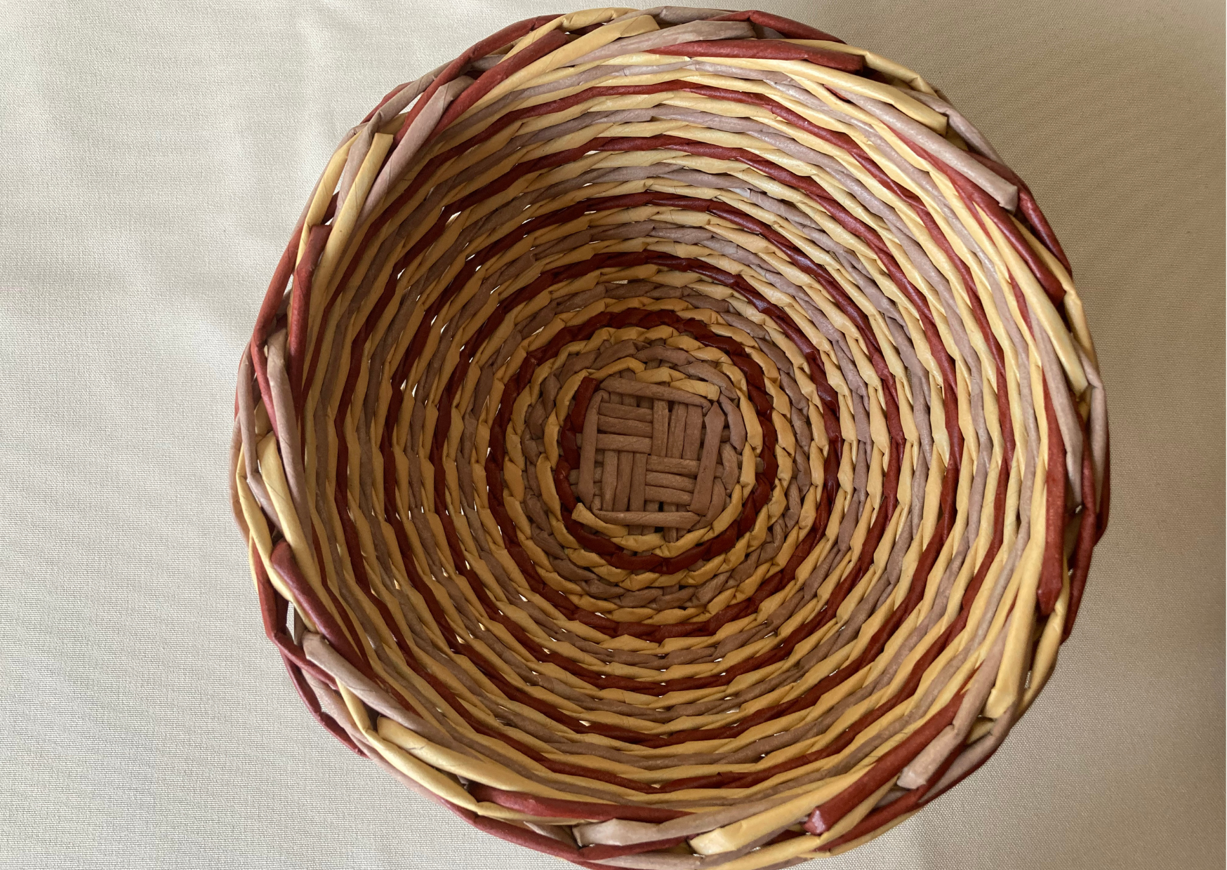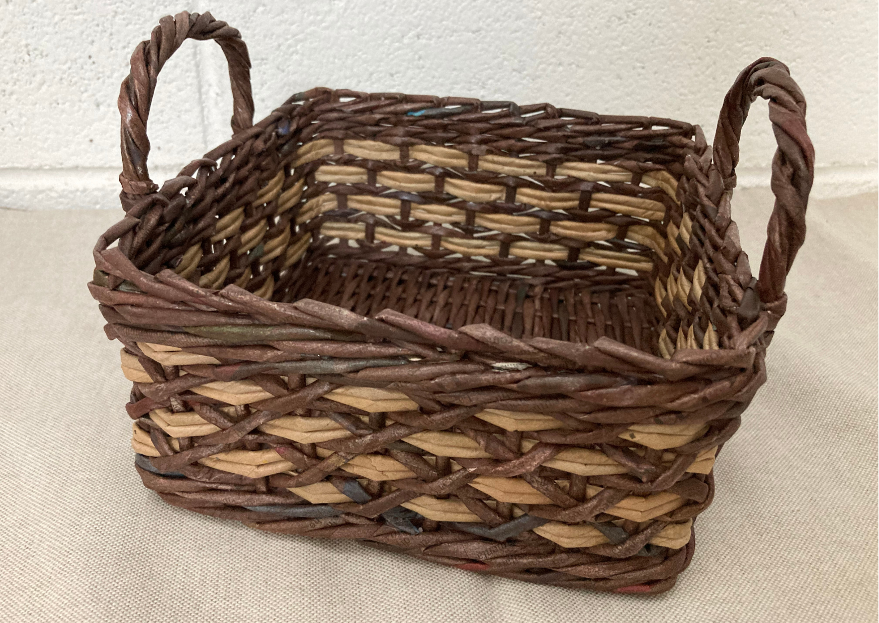 Proprio da questo atteggiamento consapevole e dall’incontro tra l’antica tecnica dell’intreccio e il riciclo creativo nasce: intreccio quotidiano. Questa tecnica prevede prima di tutto la trasformazione della carta di giornale in “cannucce” che verranno colorate ed intrecciate a regola d’arte come se fossero materiali naturali comunemente utilizzati per l’intreccio.