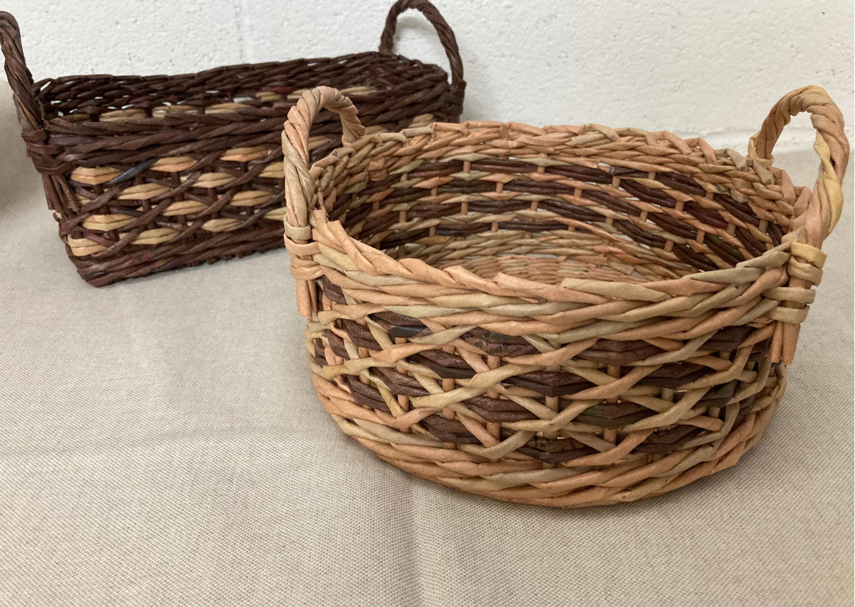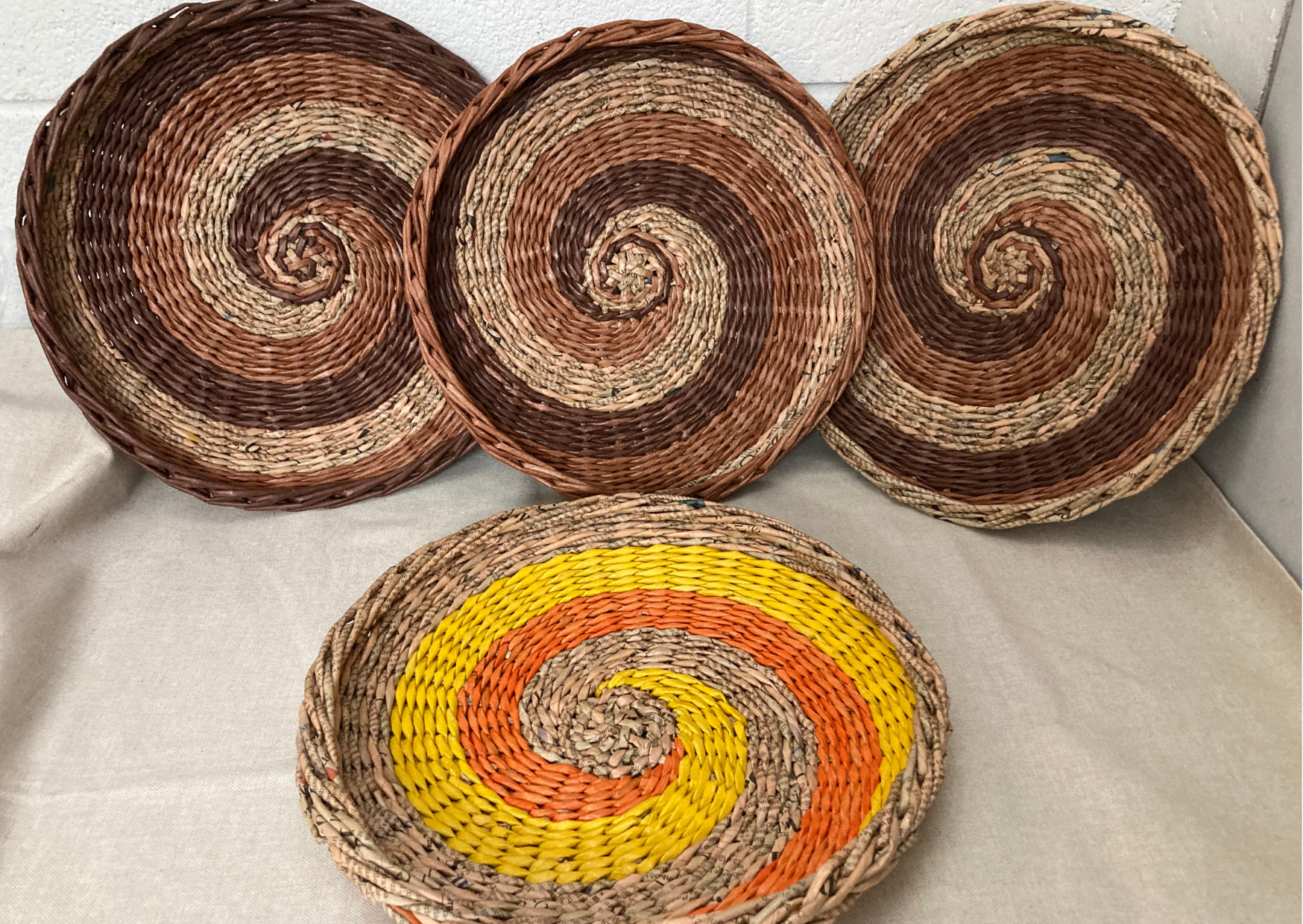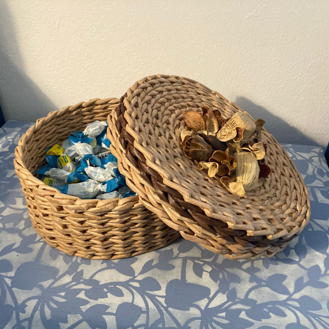 Proprio da questo atteggiamento consapevole e dall’incontro tra l’antica tecnica dell’intreccio e il riciclo creativo nasce: intreccio quotidiano. Questa tecnica prevede prima di tutto la trasformazione della carta di giornale in “cannucce” che verranno colorate ed intrecciate a regola d’arte come se fossero materiali naturali comunemente utilizzati per l’intreccio.