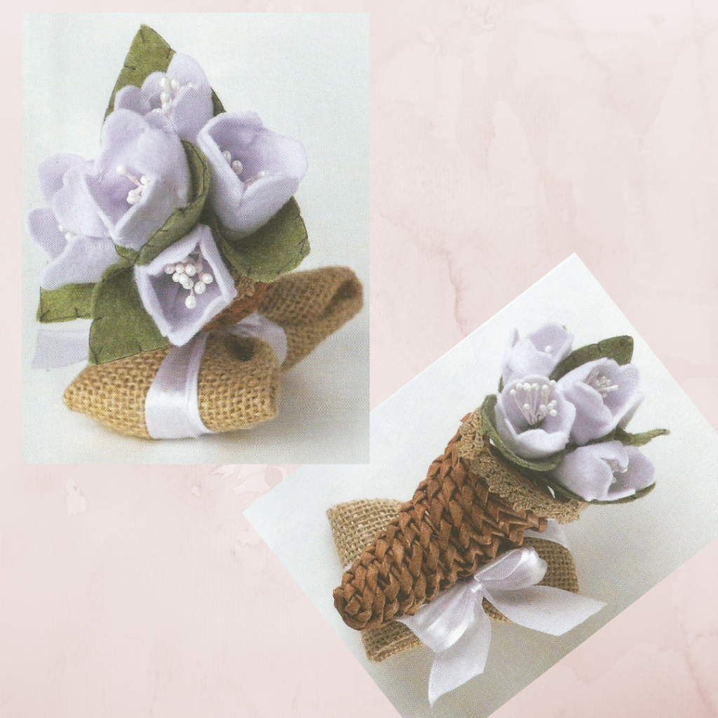 - Cuci insieme 4 petali, uno accanto all’altro, a punto festone. Risvolta e chiudi a cerchio lasciando aperto il lato superiore sagomato e lasciando un piccolo foro alla base.