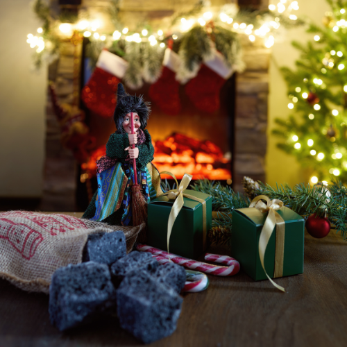 • Il carbone, simbolo di ammonimento, oggi viene spesso sostituito da dolci di zucchero nero, così da non rovinare la festa a nessun bambino.
